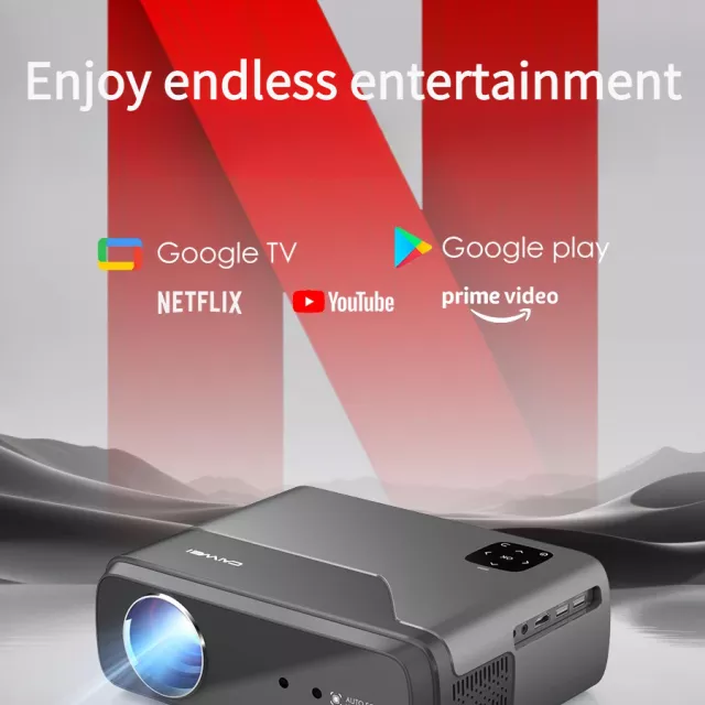 This upgraded version introduces features rarely found in portable home projectors. It supports direct app content push, remembers your streaming progress, and offers unlimited access to apps through Google Play. Its advanced system ensures fast performance, sharp rendering, and industry-leading color accuracy. A fully sealed optical engine prevents dust and image spots, keeping your picture clean and vivid for years. With Dolby, DTS, HDR10+ and automatic keystone correction, this projector delivers an experience that feels far beyond its size.