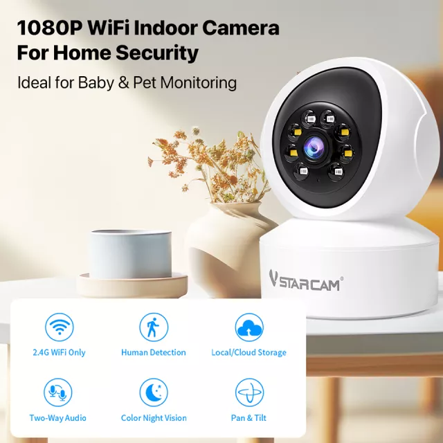 Ensure the safety of your home, office, or any indoor space with this advanced indoor security camera. Designed to offer crystal-clear 1080P Full-HD video, this camera provides **360° coverage**, allowing you to monitor every corner with ease. Equipped with **color night vision**, it gives you the ability to see clearly even in low light conditions, so you can rest assured knowing your property is under constant protection, day or night.