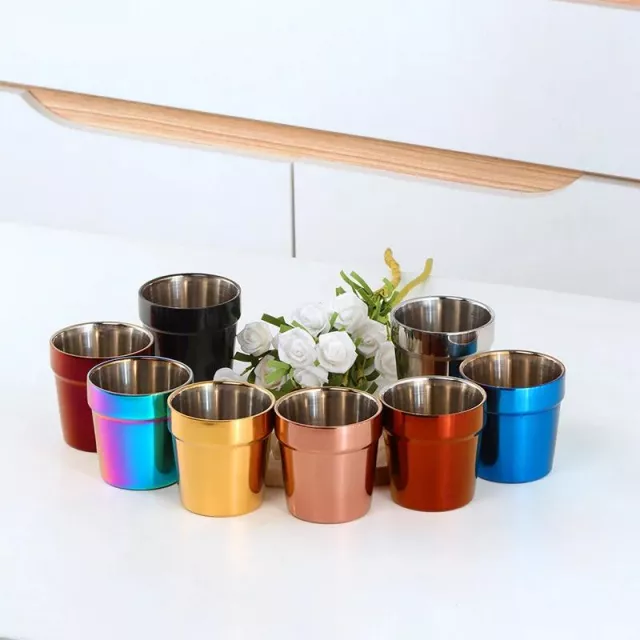 Elevate your drinkware collection with these sleek and modern double-wall stainless steel cups. Perfectly sized at 5.9 oz (175 ml), these versatile cups are ideal for enjoying your favorite beverages, whether it’s a hot cup of coffee, refreshing tea, or a cold beer at your next party. Crafted from high-quality 304 food-grade stainless steel, these cups offer durability, style, and practicality all in one. Available in a stunning range of colors including silver, gold, rose gold, black, blue, purple, and vibrant rainbow finishes, these cups add a touch of elegance to any occasion.