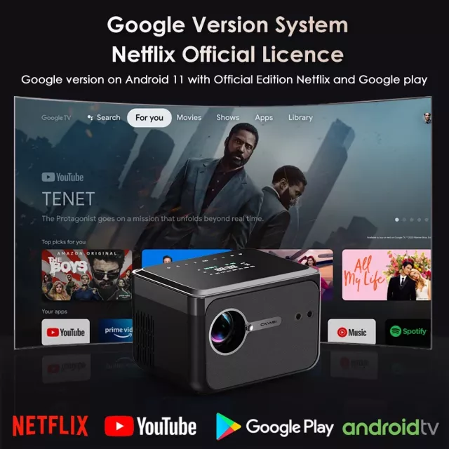 What makes this projector stand out is its officially licensed streaming access, built-in Google Play Store, and fast 5G WiFi connection. You can download your favorite apps, enjoy personalized recommendations, and push content directly from your phone—quickly, easily, and without additional devices. With Google voice control and mobile phone remote capability, your entertainment becomes seamless and hands-free.