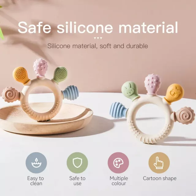 The gentle pressure from the silicone helps to massage the gums and alleviate discomfort caused by emerging teeth. It also doubles as a training toothbrush to promote healthy oral habits early on. With no sharp edges and a soft, chewable texture, this teether provides a safe, enjoyable experience for your baby.