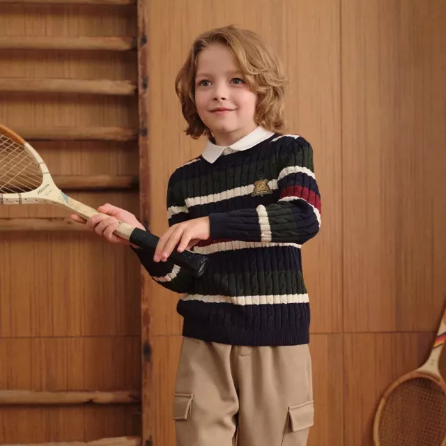 What makes this sweater truly special is its timeless college-style design paired with a crisp turn-down collar. Its clean, refined look makes it easy to dress up or down—perfect for family photos, holiday gatherings, or simply looking put-together at school. This is an everyday essential that helps boys feel confident, comfortable, and ready for the day.