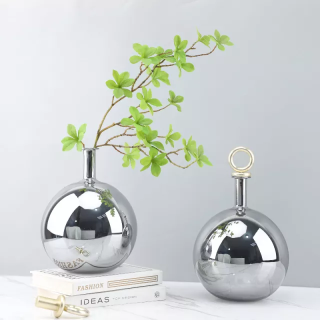 Elevate the elegance of your home with this stunning Electroplating Silver Ball Glass Vase Ornament. This modern floral arrangement container combines both artistry and functionality, making it a perfect centerpiece for any room. Its sleek, high-end design and captivating silver finish bring sophistication to any dining table, living room, or office space.