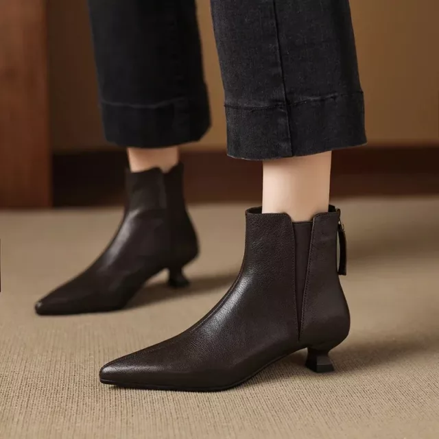 These ankle boots are the ultimate fusion of style, comfort, and practicality. Whether you’re at the office, out for a casual outing, or attending a special event, these boots will keep you looking chic and feeling confident. The pointed toe design not only enhances the elegance but also creates a sleek and flattering silhouette. The soft plush lining and genuine leather construction provide comfort, while the 3.5 cm heel height gives you a subtle lift without compromising on stability.