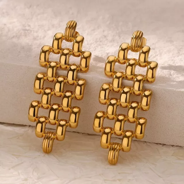 These Gold Stainless Steel Hollow Bead Earrings stand out not just for their aesthetic beauty, but also for their versatility. The geometric design gives them a contemporary flair, while the gold color adds a timeless touch of elegance. They can be paired with everything from evening gowns to everyday outfits, making them a great addition to any jewelry box.