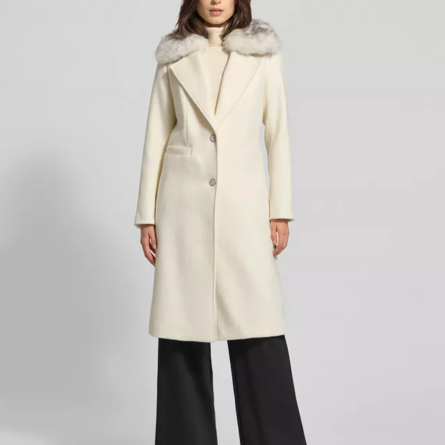 This Guess Women’s White Coat is not just another outerwear piece—it’s a statement of style. Its versatile design allows you to wear it with casual outfits like jeans and sweaters, or with more formal attire for a polished, sophisticated look. The high-quality wool-blend material ensures that you’ll stay warm without feeling bulky, while the button fastening and front pockets offer both practicality and charm.