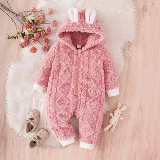 Meet the perfect cold-weather essential for your baby girl. This cozy winter romper is designed to keep your little one warm, comfy, and irresistibly cute all season long. Crafted from soft, high-quality polyester, it features a plush hood topped with charming rabbit ears that bring a touch of fun to everyday wear. Whether you’re heading outdoors, relaxing at home, or snapping adorable photos, this romper offers both comfort and style in one lovable outfit.