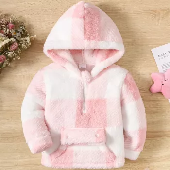 Warm Pink Plaid Hoodie Jacket for Girls | Cozy Winter Long-Sleeve Top