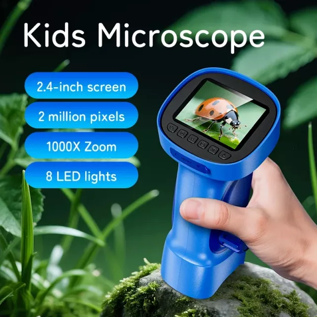 Bring science to life with this fun and easy-to-use digital microscope made especially for curious young explorers. With a bright 2.4-inch IPS screen and powerful zoom up to 1000x, kids can enjoy sharp, high-definition views of leaves, fabric, rocks, insects, and so much more. This portable handheld design makes it perfect for little hands and big imaginations.