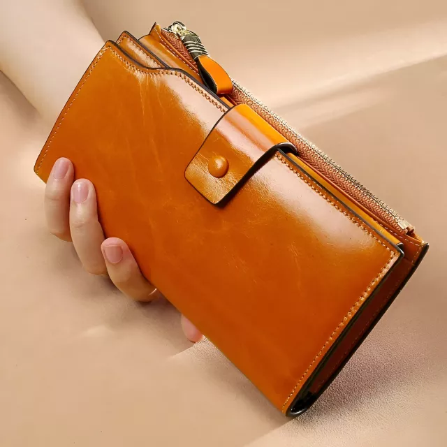 RFID Blocking Genuine Leather Women’s Long Wallet – Stylish & Functional