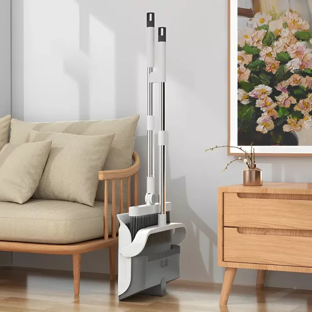 This broom and dustpan set is a must-have for anyone who wants a thorough clean with minimal effort. Its adjustable handle ensures comfort during use, while the soft, durable bristles work efficiently on various floor types without causing scratches. Thanks to the innovative scraper teeth design on the dustpan, dealing with pet hair or long strands is a breeze—no more manually picking up hair or bending over to clean corners. The foldable and space-saving design makes it perfect for small homes or apartments where every inch counts.