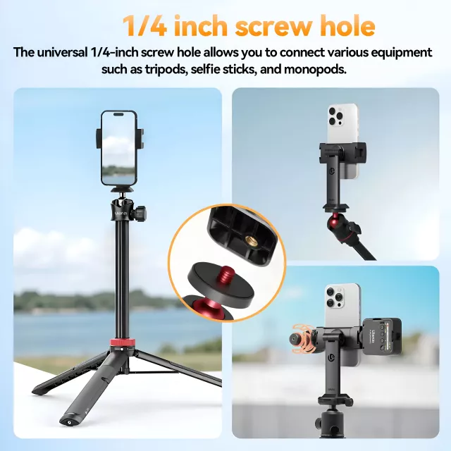 • 1/4″ Screw Thread – Easily screws into any standard tripod, ensuring a secure fit for your phone during use.