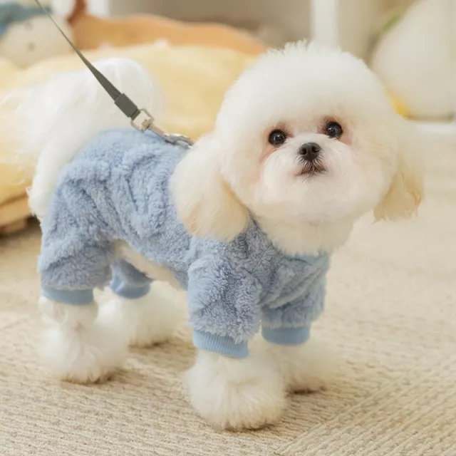 Unlike ordinary dog clothing, this jumpsuit combines simplicity with thoughtful function. The fleece lining keeps your pet warm in cold weather, while the four-leg cut adds extra protection from wind. The soft texture and stretchy design mean your dog can move easily and comfortably, making it suitable for both indoor and outdoor wear. Its lightweight feel and adorable macaron colors create a warm, fashionable look that stands out without overwhelming your pet’s natural charm.