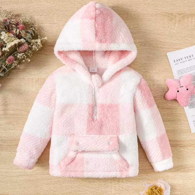 Wrap your little one in softness and style with this cute pink plaid winter hoodie jacket designed for girls ages 2–8. Made with a plush cashmere-blend and thickened polyester lining, this cozy top keeps her warm on chilly days while still feeling lightweight and comfortable. The soft, fluffy texture feels gentle against the skin, making it perfect for active play, school days or family outings during the colder months.