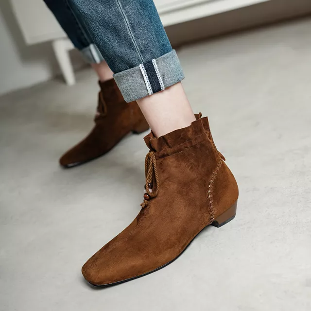 These Winter Women Boots aren’t just another pair of shoes—they’re a stylish solution to all your winter wardrobe needs. The kid suede leather construction provides a soft feel with a sophisticated look, while the short plush lining ensures your feet stay warm and comfortable. The low heel offers just enough lift, and the square toe creates a modern silhouette that pairs effortlessly with your favorite outfits. The lace-up design lets you adjust the fit for all-day comfort, so you can enjoy a secure and cozy fit no matter where your day takes you.