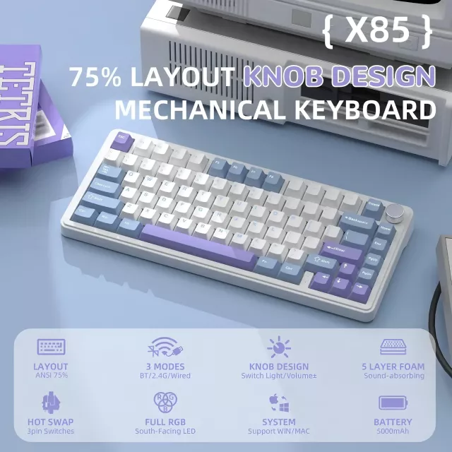 Elevate your gaming and typing experience with this high-performance wireless mechanical keyboard. Designed to provide gamers, content creators, and professionals with the ultimate blend of speed, responsiveness, and comfort, this keyboard features hot-swappable switches, RGB lighting, and durable PBT keycaps. Whether you’re powering through intense gaming sessions or typing up your next project, this keyboard delivers an experience that’s both enjoyable and reliable.