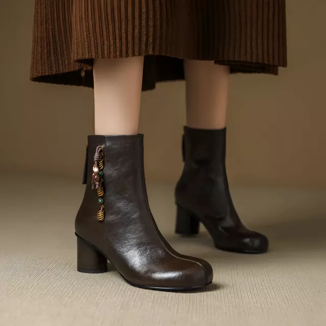 These genuine leather ankle boots are more than just a stylish addition to your wardrobe – they’re designed for comfort, durability, and versatility. Whether you’re braving the chilly winds of the cold snap of winter, these boots are your go-to footwear for warmth and fashion. The 6 cm square heel gives you a confident lift without sacrificing comfort, making these boots the ideal choice for all-day wear.