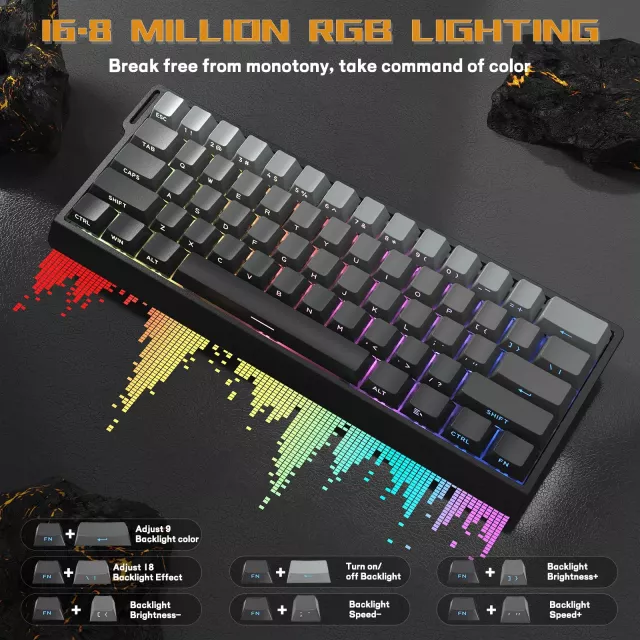 Its ultra-compact 60% layout with just 61 keys means it takes up less desk space without sacrificing essential functionality. The keyboard’s ergonomic design makes it comfortable to use for extended periods, whether you’re gaming, coding, or typing.